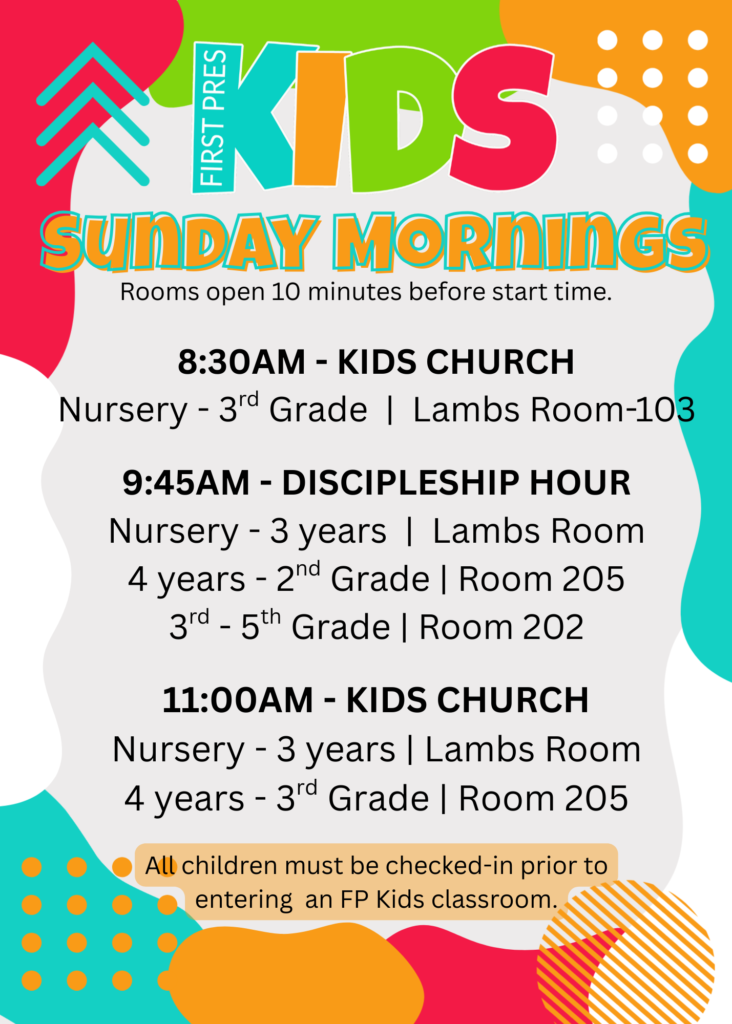 If you are new to First Pres, please complete our FP Kids and Youth Registration Form.